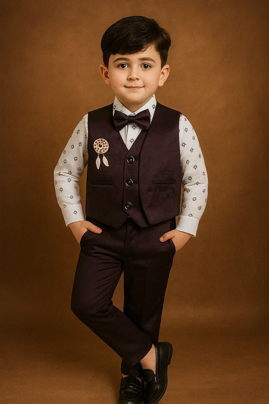 Sailittle Attire Boys Festive & Party Shirt, Waistcoat And Pant Set(Maroon Pack Of 1)
