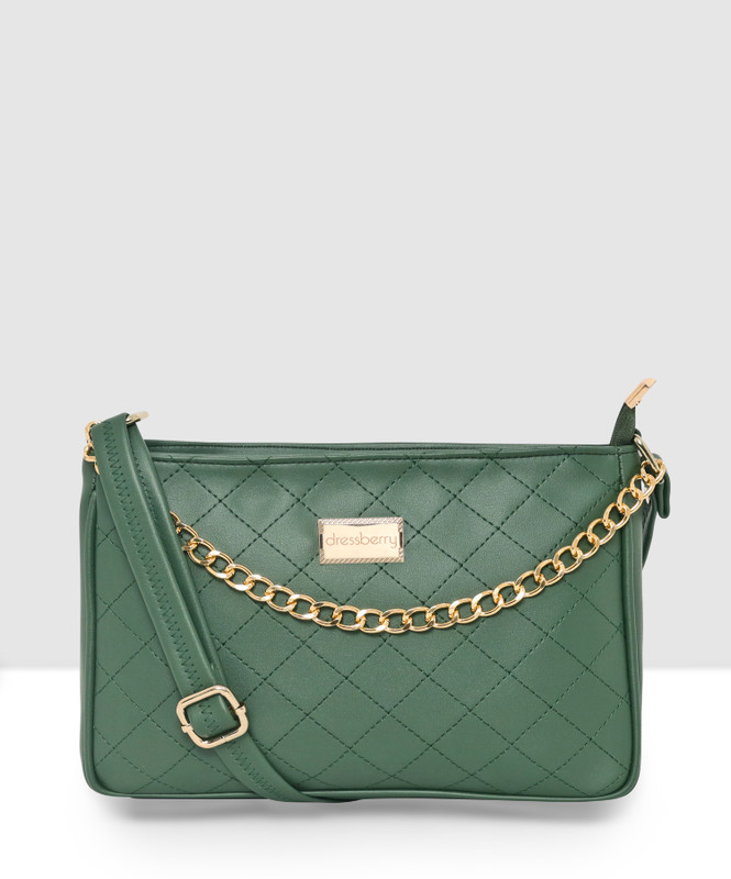 Dressberry Green Sling Bag Juliette Stylish Crossbody Sling Bag With Metal Chain & Adjustable Strap is available on Flipkart at best discounted online price. Original of this product is ₹ 2999.0. You can buy this product at discounted rate ₹ 429.